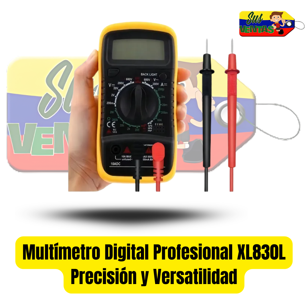 Multímetro digital XL830L, ideal para medir y diagnosticar circuitos eléctricos de forma rápida y precisa. Perfecto para electricistas, técnicos, estudiantes o uso en el hogar.