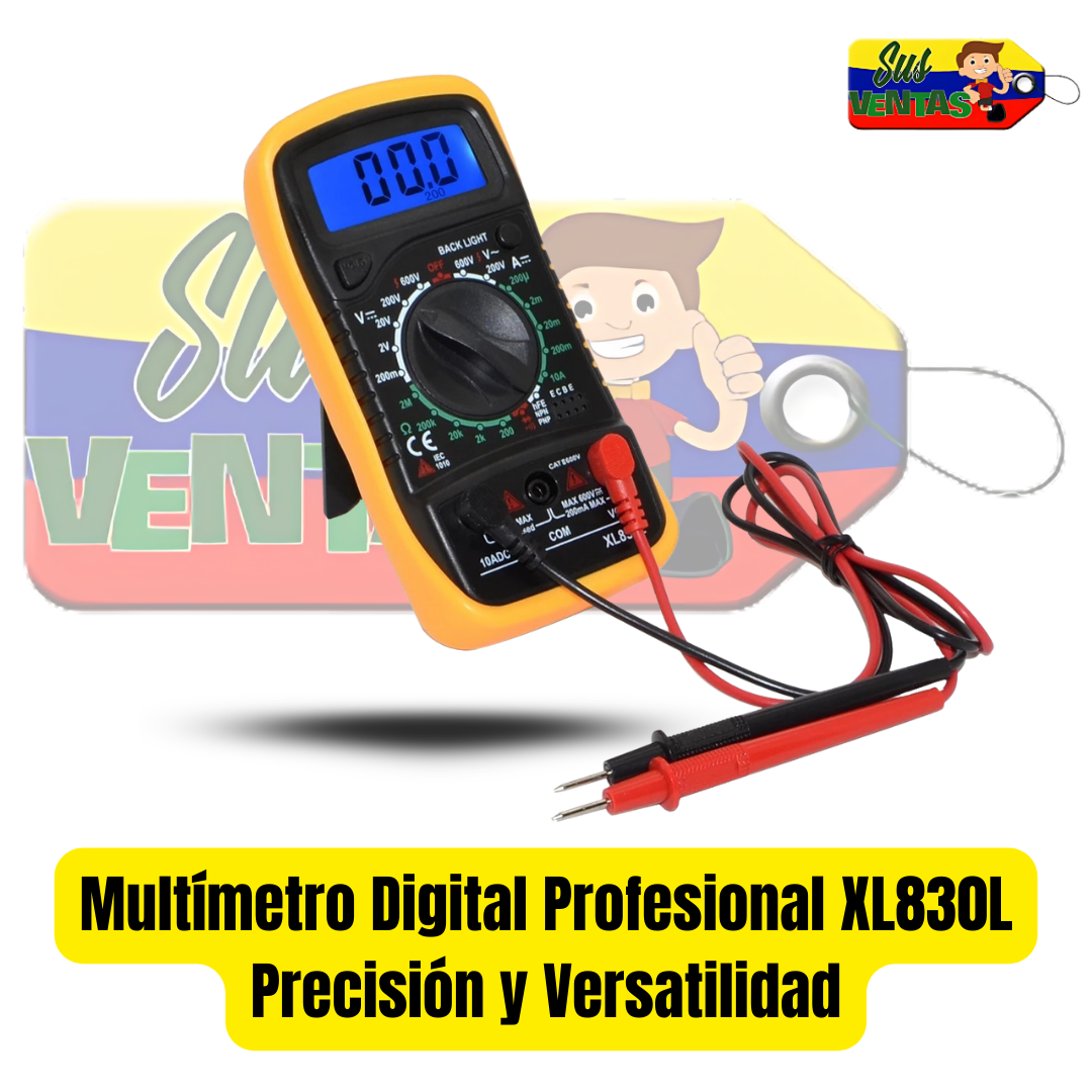 Multímetro digital XL830L, ideal para medir y diagnosticar circuitos eléctricos de forma rápida y precisa. Perfecto para electricistas, técnicos, estudiantes o uso en el hogar.